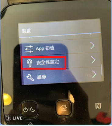 - 主畫面 > 選擇裝置 > 選擇安全性設定