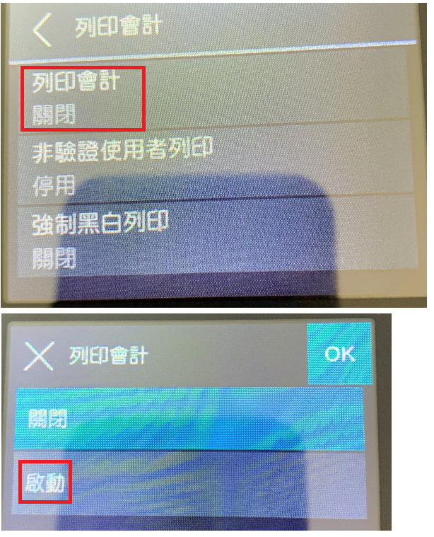 - 啟動 [列印會計]