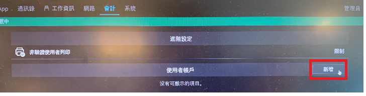 - 使用者帳戶按 [新增]