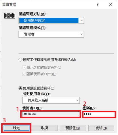 - 請輸入在CWIS設定的使用者名稱和密碼 > 按確定